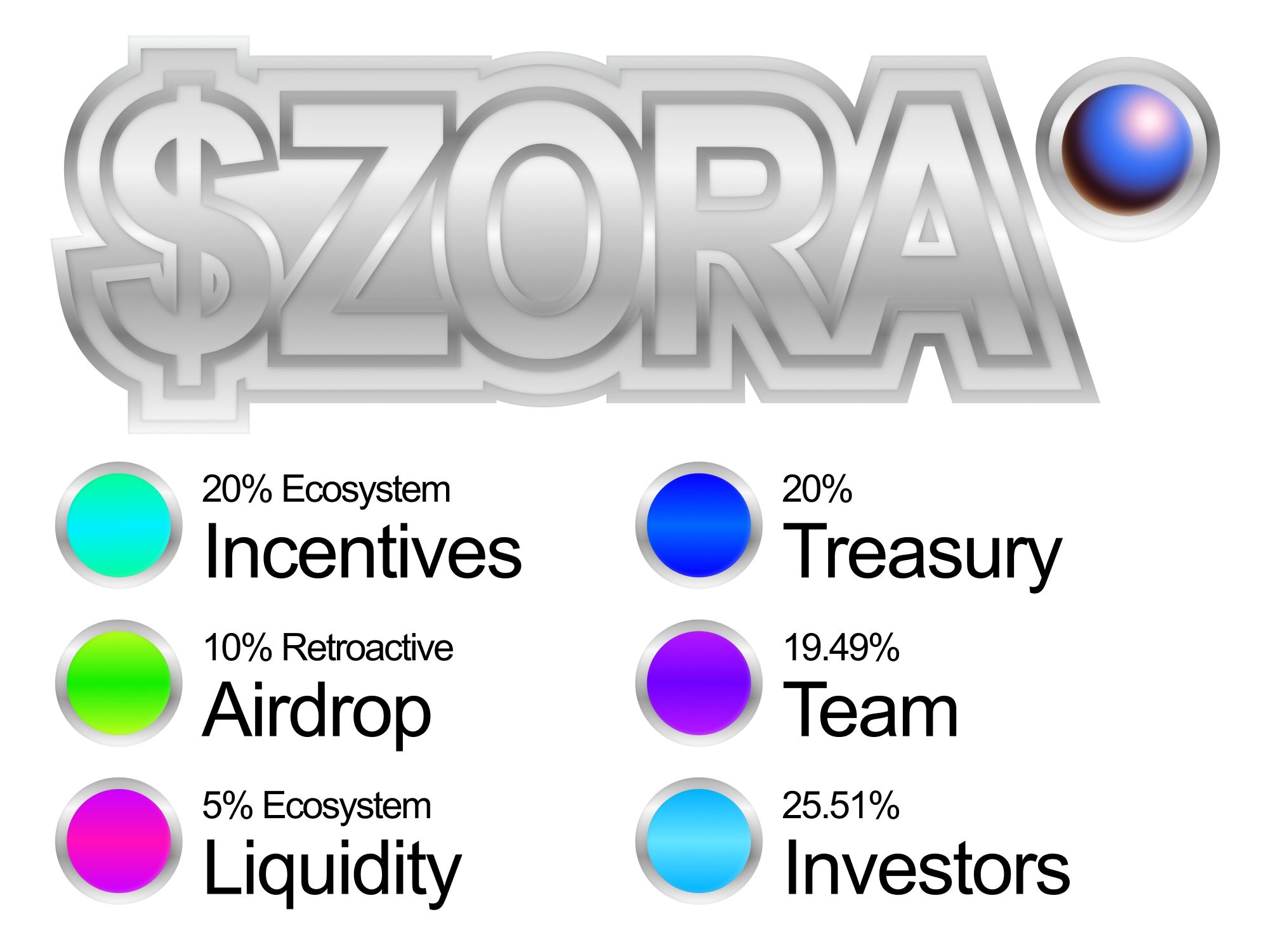 - Retroactive Airdrop: The initial distribution of $ZORA will be to the Zora community, including creators, collectors, developers, and the broader community that contributed to the creation of the Zora brand. Tokens will be airdropped to eligible addresses.